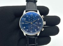 09401337 YL공장 IWC 포르투기저 크로노그래프 150Years 에디션 스틸 블루다이얼 가죽스트랩