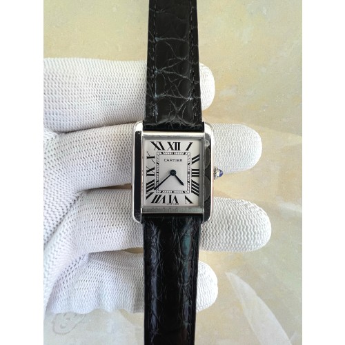 국내배송!! AF공장 까르띠에 탱크솔로 24MM 스틸 화이트다이얼 블랙크로커다일스트랩 (고유번호 w4f3)