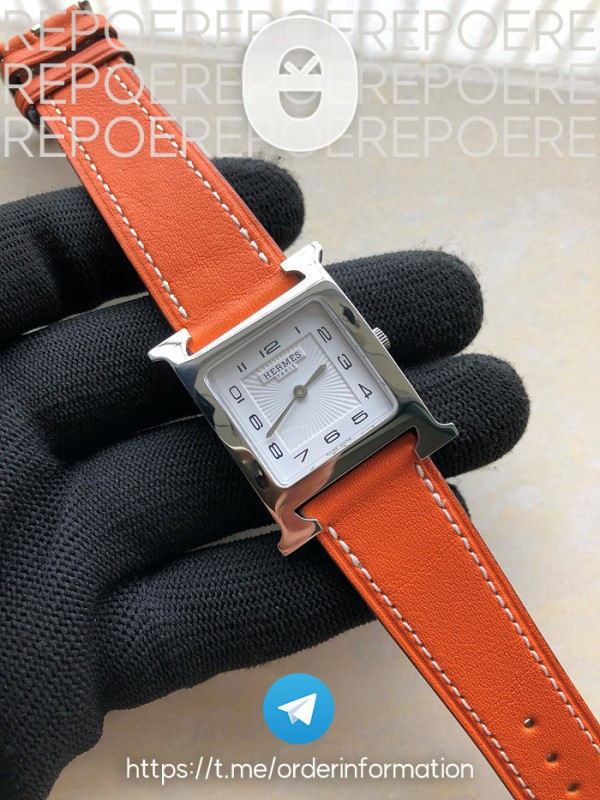 15061938a MK 에르메스 H아워 스틸 화이트다이얼 오렌지스트랩