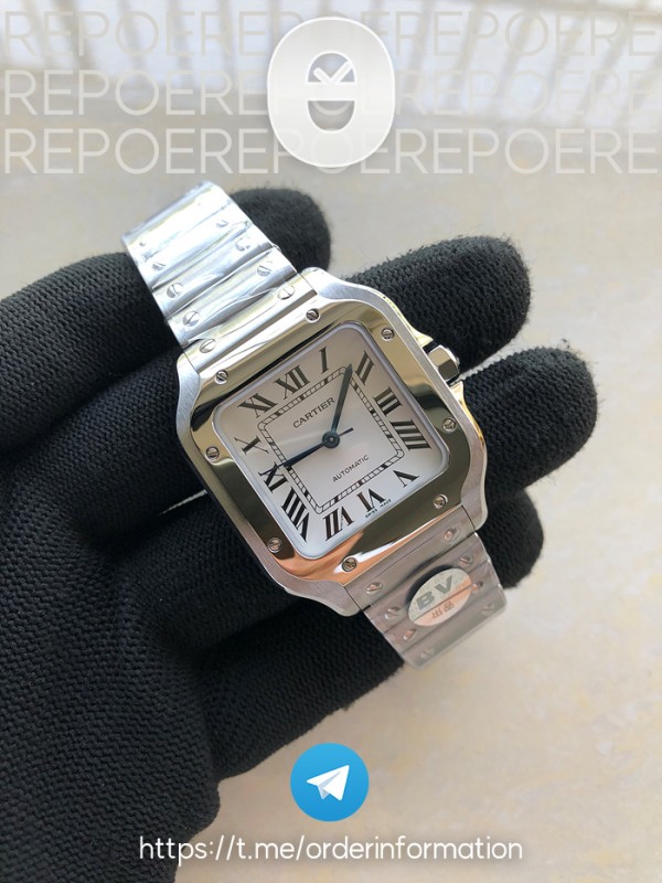 15161848 BV공장 까르띠에 산토스 2018 미디움 스틸 화이트다이얼 스마트링크브레이슬릿