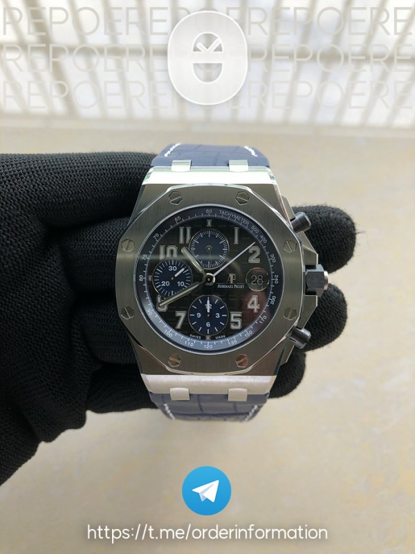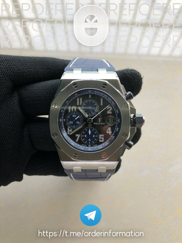 19525051a JF공장 오데마피게 로얄오크오프쇼어 크로노그래프42MM 2018SIHH발표작 스틸 블랙앤블루투톤다이얼 가죽스…