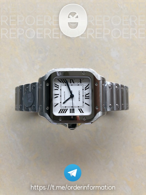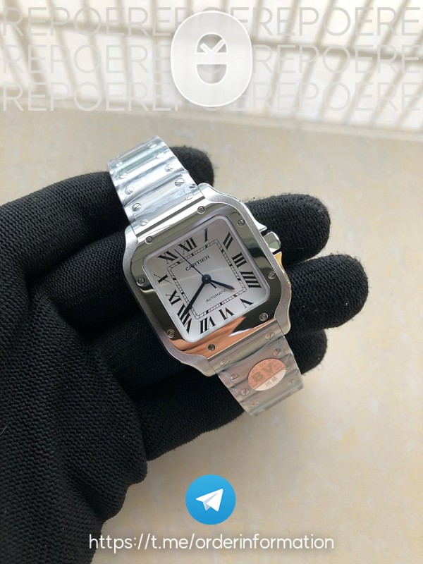 14594640 BV공장 까르띠에 산토스 2018 미디움 스틸 화이트다이얼 스마트링크브레이슬릿 레드악어줄 > 발송전 실물사진