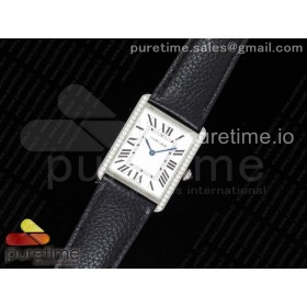 AF공장 까르띠에 탱크솔로 27 라지 스틸 화이트다이얼 다이아몬드베젤 소가죽스트랩 Tank Solo Ladies 27mm SS White Dial Diamonds Bezel on Black Leather Strap Ronda Quartz