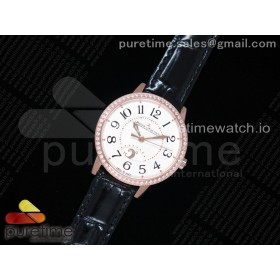 ZF공장 예거르쿨트르 랑데뷰 로즈골드 금통 화이트텍스쳐다이얼 다이아몬드 가죽스트랩 Rendez-Vous Night & Day RG White Dial Black Markers Diamonds Bezel on Black Leather Strap A898