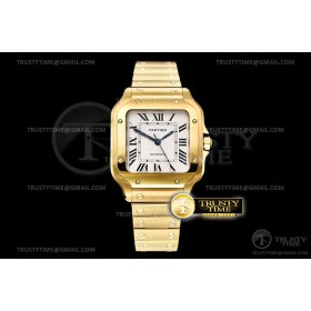 • BV공장 까르띠에 산토스 드 까르띠에 2018 미디움 옐로우골드 화이트다이얼 스마트링크브레이슬릿 Santos De Cartier Ladies 35mm YG/YG Wht BVF MY9039