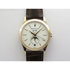 GR공장 애뉴얼 캘린더 로골 화이트다이얼 가죽스트랩 Annual Calendar Complications 5396 RG GRF Best Edition White dial on Brown leather strap A324 > 파텍필립뒤로