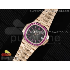• GR공장 파텍필립 노틸러스 5711 로즈골드금통 퍼플다이아몬드바게트베젤 그레이다이얼 퍼플바게트인덱스 브레이슬릿 Nautilus 5711 RG GRF 1:1 Best Edition Gray Dial Purple Diamonds Bezel on RG Bracelet 324CS