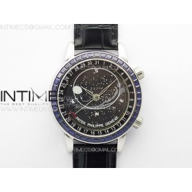3E공장 파텍필립 6104P 문 블루다이아몬드배젤 블랙다이얼 블랙가죽스트랩 6104P Moon SS 3EF Best Edition Black Dial Blue T Diamond Bezel on Black Leather Strap A240