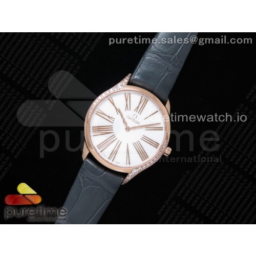 오메가 드빌 트레소르 퀴츠 로골 화이트다이얼 가죽스트랩 De Ville Tresor Quartz 36mm Ladies RG White Dial on Black Leather Strap Ronda Quartz