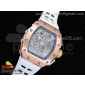 KV 리차드밀 RM011 로즈골드 크로노그래프 크리스탈스켈레톤 화이트러버스트랩 RM011 RG Chronograph SS Case Crystal Skeleton Dial on White Rubber Strap A7750 > 리차드밀