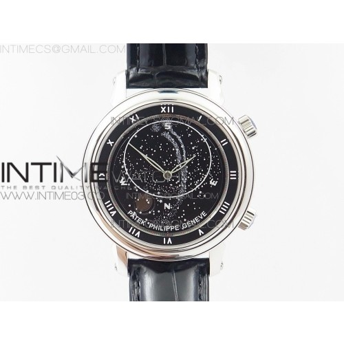 • TW공장 파텍필립 6104P 문 스틸 블랙다이얼 블랙가죽스트랩 6104P MOON SS BLACK DIAL ON BLACK LEATHER STRAP A240 V2