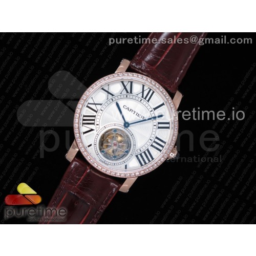 BL공장 까르띠에 로통드 플라잉 투어빌론 로즈골드금장 다이아베젤 화이트다이얼 가죽스트랩 Rotonde Flying Tourbillon RG White Dial Diamonds Bezel on Brown Leather Strap V2