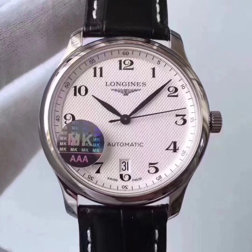 MK공장 론진 마스터 데이트 스틸 화이트다이얼 가죽스트랩