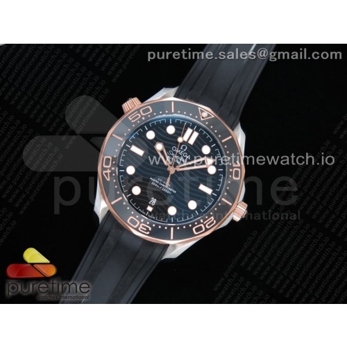 OM공장 오메가 씨마스터 다이버 300M 로즈골드 콤비 블랙물결텍스쳐다이얼 러버스트랩 2018 Seamaster Diver 300M SS/RG Black Ceramic Black Dial on Black Rubber Strap A8800 (Black Balance Wheel)