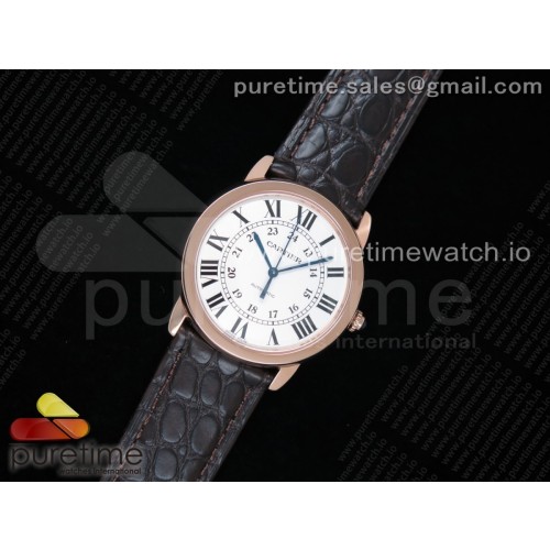 • TW공장 까르띠에 롱드솔로 36 로즈골드 금통 화이트다이얼 브라운가죽스트랩 Ronde Solo De Cartier 36mm RG White Dial on Brown Leather Strap ETA2671