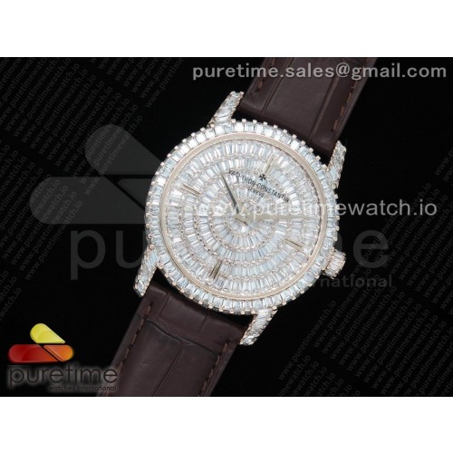 바쉐론콘스탄틴 트레디셔널 로골 풀다이어모델 가죽스트랩 Traditionnelle High Jewellery Watch RG Full Diamonds on Brown Leather Strap MIYOTA9015