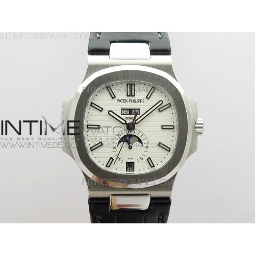GR공장 V2 노틸러스 애뉴얼캘린더 화이트다이얼 가죽스트랩 NAUTILUS 5726 SS GRF 1:1 BEST EDITION WHITE DIAL WORKING ANNUAL CALENDARON BLACK LEATHER STARP A.324 V2