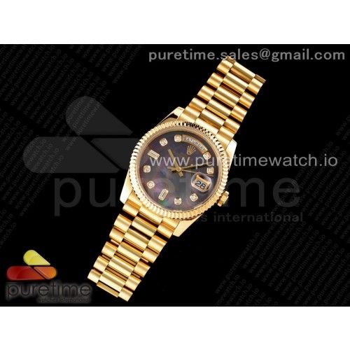 GM공장 롤렉스 데이데이트 40 옐로우골드 금통 자개다이얼 2836 Day Date 40 YG 904L Steel Fluted Bezel GMF 1:1 Best Edition Gray MOP Diamonds Dial on YG Bracelet A2836 > 롤렉스