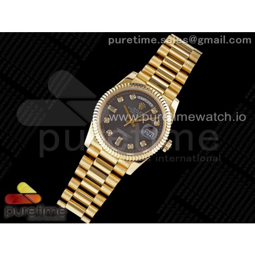GM공장 롤렉스 데이데이트 36 옐로우골드 금통 샴페인다이얼 2836 Day Date 40 YG 904L Steel Fluted Bezel GMF 1:1 Best Edition YG Diamonds Dial on YG Bracelet A2836