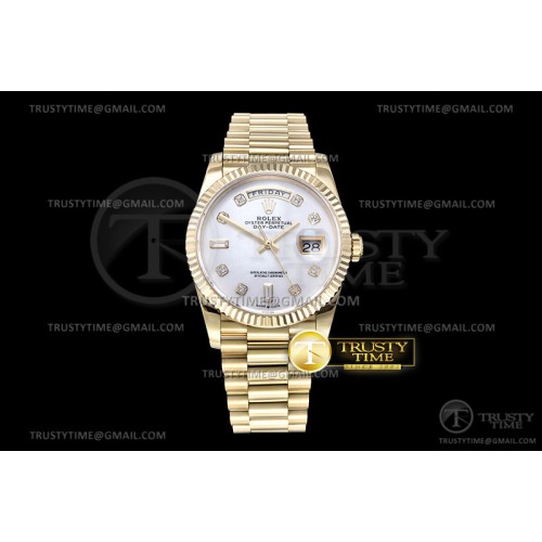 GM공장 롤렉스 데이데이트 36 옐로우골드 금통 자개다이얼 다이아몬드인덱스 2836 DayDate 36mm Flt Pres 904L YG/YG Wht M/Dia GMF A2836