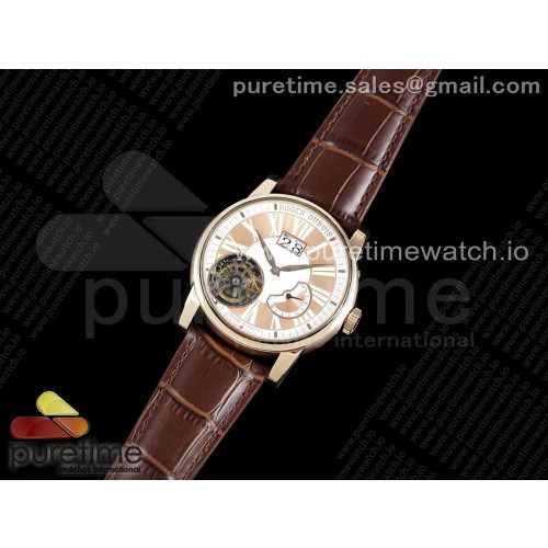 JB공장 오마쥬 플라잉 뚜르비용 로골 화이트다이얼 가죽스트랩 Hommage Flying Tourbillon RG JBF Best Edition White/RG Dial on Brown Leather Strap > 로져드뷔