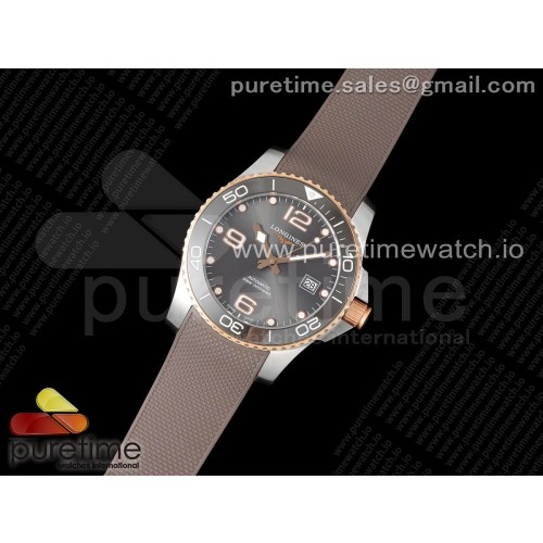 ZF공장 론진 하이드로콘퀘스트 옐로우골드콤비 그레이다이얼 러버스트랩 Conquest SS/YG Gray Ceramic Bezel SS ZF 1:1 Best Edition Gray Dial on Brown Rubber Strap A2824
