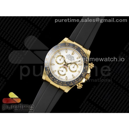 RR공장 롤렉스 세라믹 데이토나 옐로우골드금통 화이트다이얼 러버스트랩 Daytona 116518 RRF 1:1 Best Edition 904L Steel White Dial on Oysterflex Strap Slim A7750