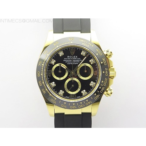 APS공장 롤렉스 세라믹 데이토나 옐로우골드금장 블랙다이얼 8p 러버스트랩 텅스텐 Daytona 116518 YG APSF Gain Weight 1:1 Best Edition Black/Gold Dial Diamonds Markers on Oysterflex Strap SH4130 > 시계쇼핑