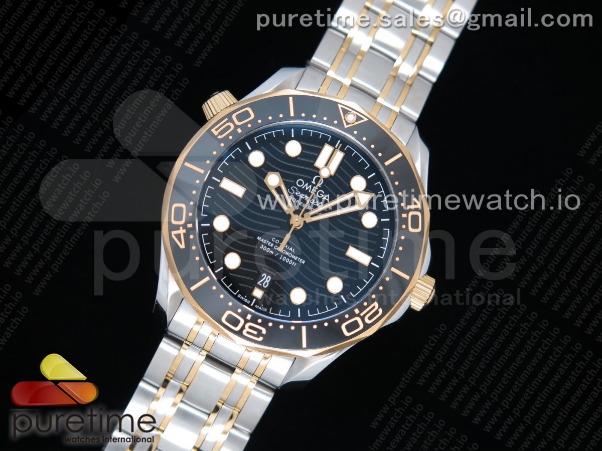 OM공장 오메가 씨마스터 다이버300 옐로우골드콤비 블랙물결텍스쳐다이얼 브레이슬릿  2018 Seamaster Diver 300M SS/YG Black Ceramic Black Dial on SS/YG Bracelet A8800 (Black Balance Wheel)