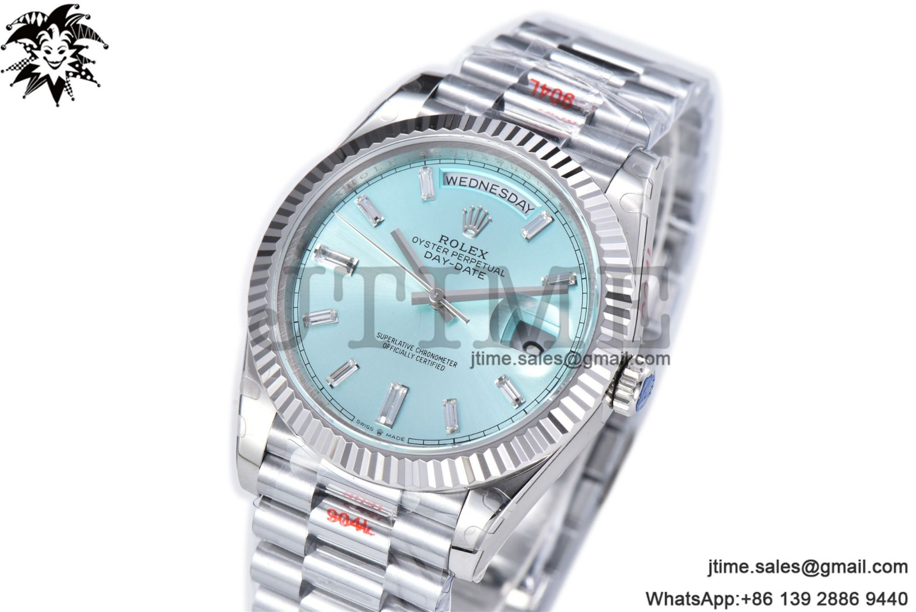 GM공장 롤렉스 데이데이트 40 스틸 아이스블루다이얼 바게트인덱스 프레지던트브레이슬릿 텅스텐 3255 DDay Date 40 SS 904L Steel GMF 1:1 Best Edition Ice Blue Crystal Dial on SS Bracelet A3255 (Tungsten Heavy Version)