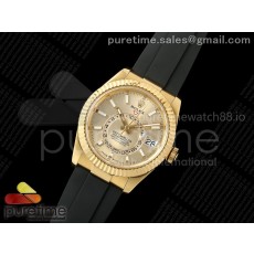 ZF공장 롤렉스 스카이드웰러 옐로우골드금통 샴페인다이얼 러버스트랩 텅스텐 Skydweller 336238 YG/RU Gold ZF V2 Asia 2824